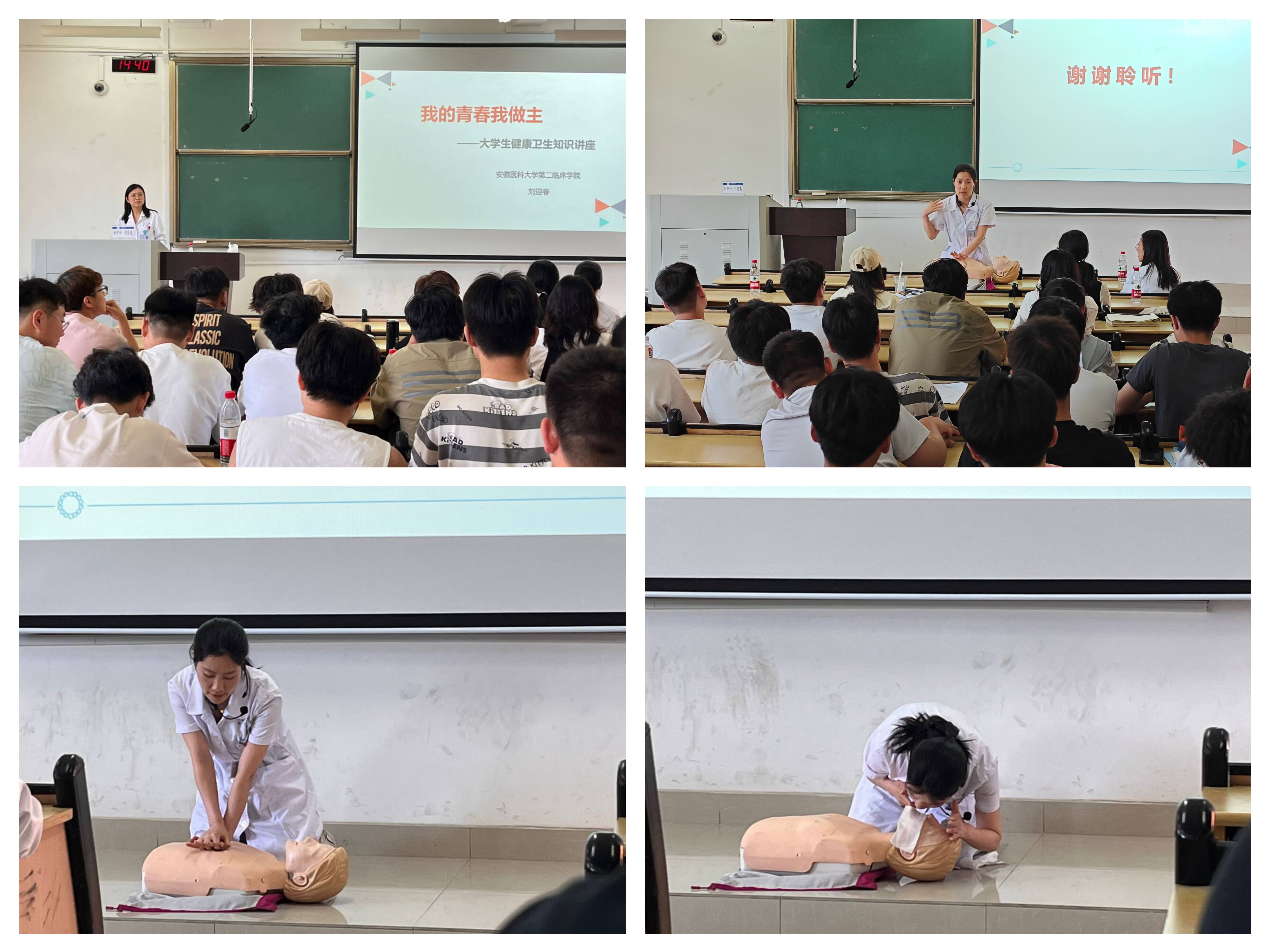 与此同时,学院分工会还在逸夫楼5203教室为在校同学举办了主题为“我的青春我做主”的大学生性与生殖健康讲座,邀请了安医大二附院妇科刘迎春主任主讲。在讲座中,刘迎春从大学性教育的必要性、认识生理的“性”、关于“性”的重要话题等方面,用通俗易懂的语言,深入浅出地介绍了大学生生理健康,在轻松愉快的氛围中让同学们学到知识。讲座结束后,安医大二附院呼吸重症监护室主管护师房元元为大家讲解了心肺复苏术的重要性、操作步骤和关键要点,并通过现场示范,让同学们直观了解了该方法的要领,掌握急救知识。