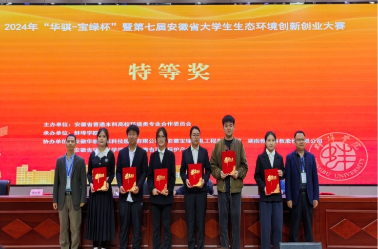 本网讯 11月16日,2024年“华骐-宝绿杯”暨第七届安徽省大学生生态环境创新创业大赛决赛在蚌埠学院成功举办。大赛由安徽省普通本科高校环境类专业合作委员会主办,蚌埠学院承办,安徽华骐环保科技股份有限公司、安徽宝绿光电工程有限公司、湖南惟楚科教股份有限公司、安徽省环境科学学会和安徽省环境保护产业协会等单位协办。此次大赛分为新工艺设计、新产品研发和创意设计三类九个组别,共有来自省内20所高校的99支参赛队伍参加决赛。