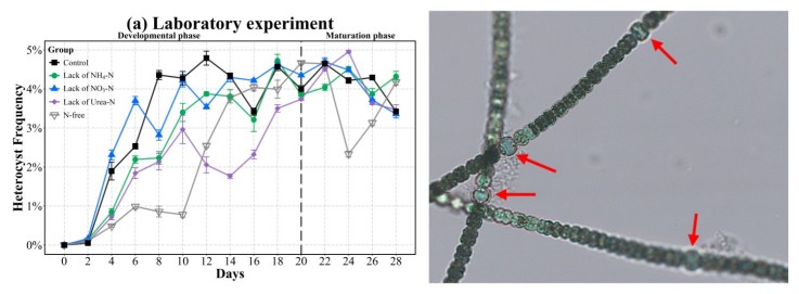 本网讯 近日,学院谢发之教授和中科院南京地理与湖泊研究所张民研究员共同指导的硕士研究生刘子琛同学以第一作者身份在环境领域权威期刊《Harmful Algae》(中科院一区期刊,影响因子:5.5)发表题为“Response of heterocyst differentiation of Dolichospermumto different forms of nitrogen deficiency”的科研论文。必赢76net线路官网为第一完成单位和通讯单位。