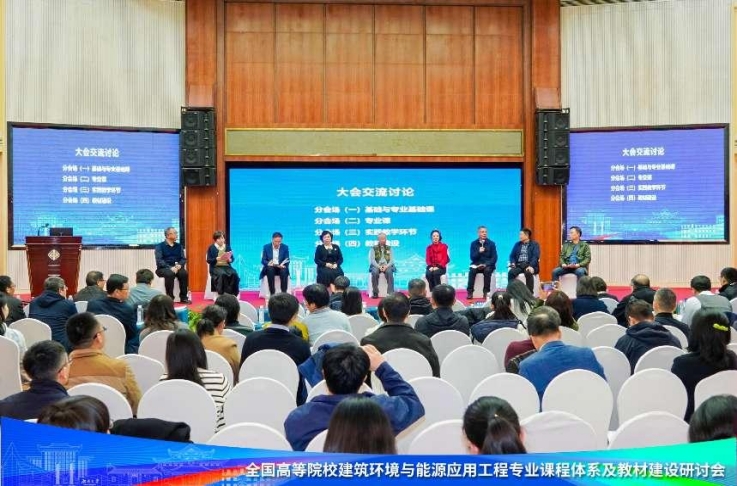 大会报告之后,代表们分别在“基础课及专业基础课”、“专业课”、“实践教学”及“教材建设”四个分会场进行充分讨论。深入地研讨了全国高等院校建筑环境与能源应用工程专业课程体系及教材建设存在的问题及对策。四个分会场讨论结束后,大家回到主会场集中交流,各分会场主持人代表和建环教指委主任、副主任、秘书长同登主席台,总结分享各分会场讨论成果,并对建环课程及教材建设关键问题各抒己见,与代表们深入交流。通过主题报告、分组讨论、集中交流,代表们对一些共性问题有了深入认识,形成了共识。