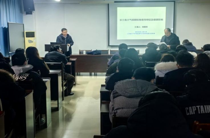 首先,陈敏东教授以《长三角大气颗粒物毒性特征及健康影响》为题,为学院广大师生做了一场精彩的学术报告,他详细阐述了长三角地区大气颗粒物的毒性特征及其对人体健康的潜在影响,并从大气颗粒物的来源、成分分析入手,利用先进的分析手段,精确测定大气颗粒物中的有毒成分并探讨这些成分对人体呼吸系统、心血管系统等的影响机制。报告结束后,陈敏东耐心回答了与会师生的提问,就大家关心的学术问题进行了深入交流和探讨。现场学术交流气氛热烈,不仅拓宽了学院师生的学术视野,也为推动学院在大气方向的研究提供了启示和借鉴。