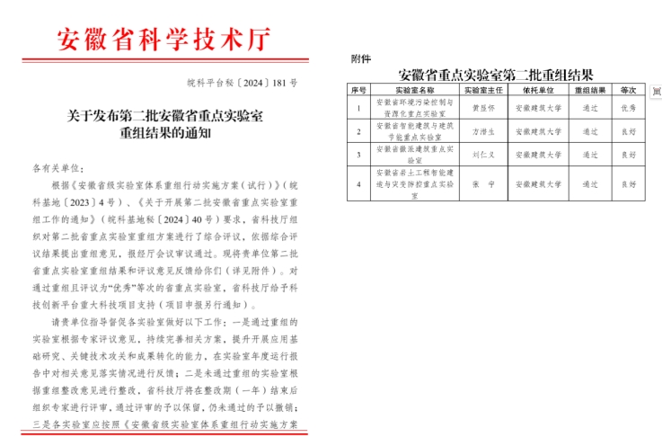 坚持以服务国家战略需求和地方经济社会发展为导向,聚焦前沿科技领域,积极整合各方资源,不断激发科研创新活力。2024年,获批国家自然科学基金3项,省部(厅)级项目3项,安徽省教育厅项目12项。联合安徽省通源环境节能股份有限公司、安徽省生态环境科学研究院申报的“环境污染控制与资源化安徽省重点实验室”以“优秀”等次通过科技厅重组评审。邀请穆杨、霍守亮、宋凡浩等国内知名评审专家作国家自然科学基金项目申报辅导会等系列辅导工作。举办21期学院青年博士论坛。科研经费入账超3100万元,发表论文151篇,申获授权专利17项,发布标准9项。联合承办2024年新污染物环境健康风险防控与预警治理大会等5场全国性学术会议,不断加强与国内外知名高校和研究机构的交流与合作,为学院科研工作的长远发展奠定坚实基础。