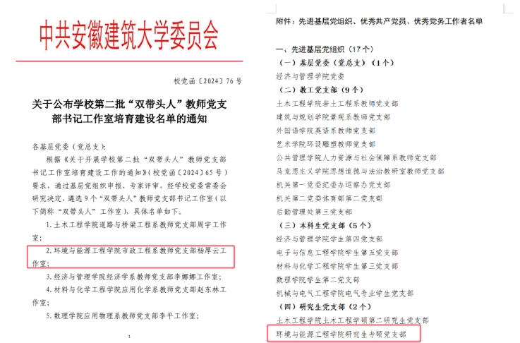 夯实基层党组织建设,引导师生党员在学院各项工作中走在前列、先行示范,持之以恒推动党建与业务“一融双高”。2024年,研究生专硕党支部获校级“先进基层党组织”荣誉称号。建筑环境与热能工程系教师党支部通过校级第二批“双创”样板党支部培育验收,获批校级“双创”样板党支部。研究生专硕第二党支部通过标准化验收。资源科学系教师党支部获批校级第三批“双创”样板党支部建设培育单位。市政工程系教师党支部杨厚云工作室获批校第二批“双带头人”教师党支部书记工作室培育建设单位。学院党组织的引领力和战斗力显著提升,师生凝心聚力、共谋发展的热情更加高涨。