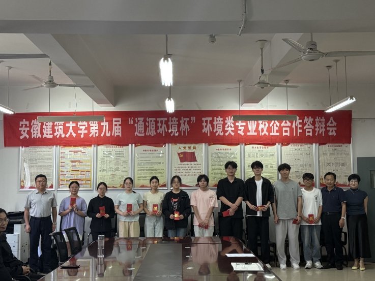 本网讯 为深入推进环境类专业培养模式改革,全面提升环境类专业办学质量,在6月5日世界环境日,必赢76net线路官网与安徽省通源环境节能股份有限公司联合举办了第九届“通源环境杯”环境类专业校企联合毕业设计(论文)答辩会。本次答辩委员会专家组由通源环境公司研发技术中心技术总监史永宁等5位校外专家和环境工程系专业教师组成。通源环境总经办主任丁彦、环能学院党委书记戴前宏、党委副书记、纪委书记胡志龙、副院长解华明出席答辩会颁奖仪式。