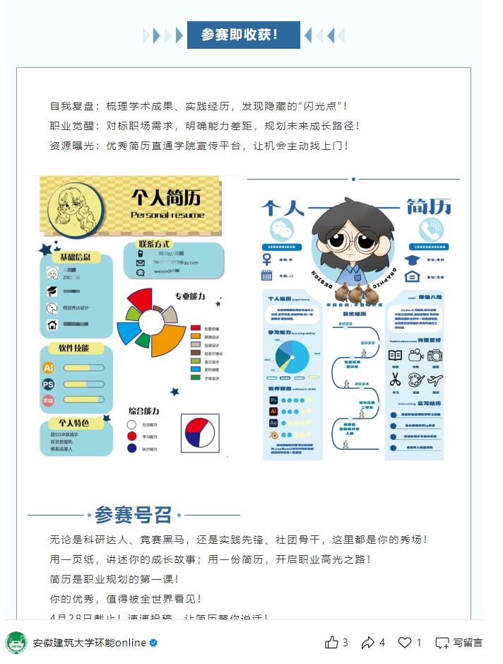本网讯 为进一步提升毕业生的就业竞争力,强化就业指导服务,环能学院自2025年5月以来,面向2026届全体毕业生成功举办了主题为“寻找职业生涯密码,开启人生高光时刻”的简历设计大赛。