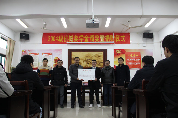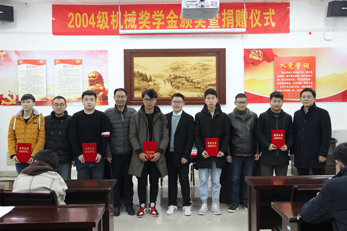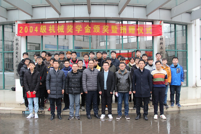 编者按:2004级机械设计制造及其自动化专业(1)(2)班校友协议捐赠5万元,设立“2004机械奖学金”。每年奖励金额1万元,时间为5年,用于每年奖励机电学院机械设计制造及其自动化专业10位优秀学生。