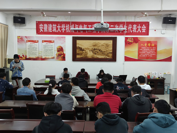 本网讯 11月4日,机电学院第二次学生代表大会在机电楼会议室举行,学院35名学生代表出席了会议。