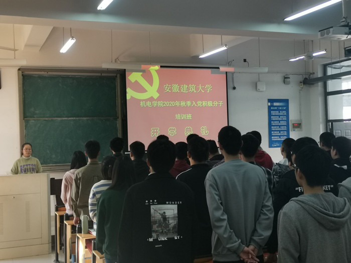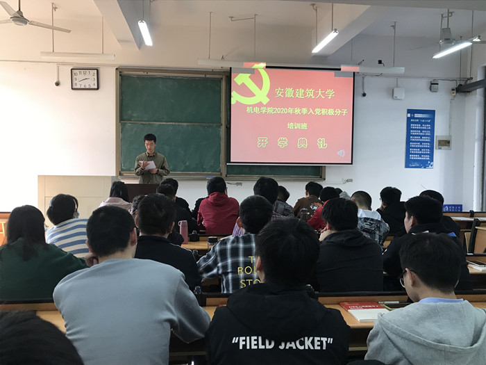 本网讯 11月11日下午,机电学院2020年秋季入党积极分子培训班在逸夫楼5120举行开班典礼,经过前期辅导员推荐、党支部审核确定73名入党积极分子参加本次培训班,机电学院分党校校务成员、学生支部书记参加了开班典礼。