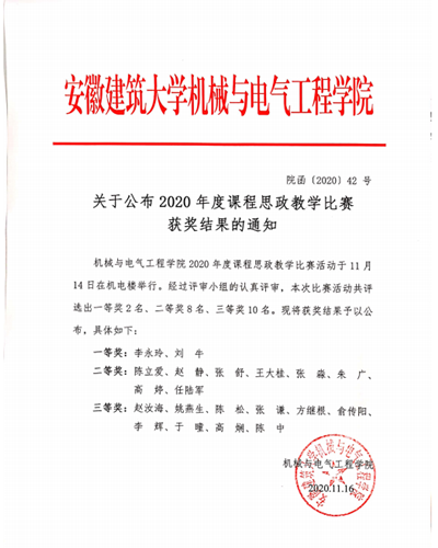 2020年课程思政教学比赛获奖结果