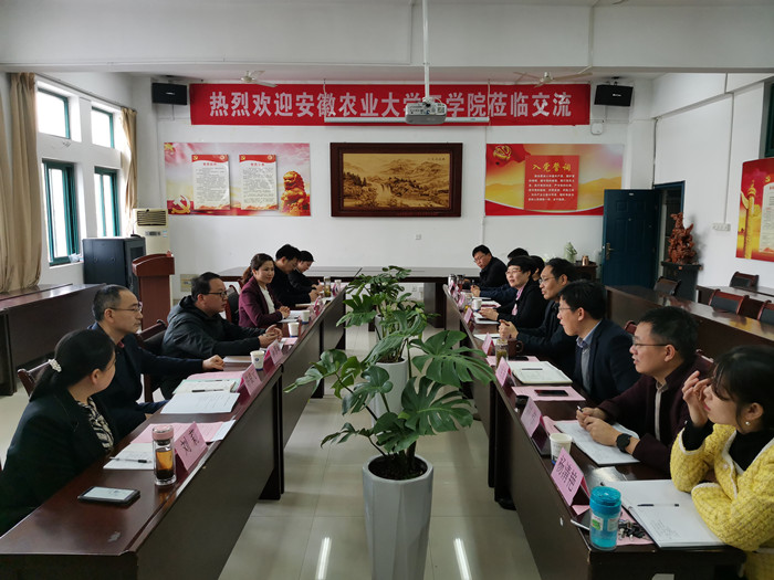 任琪对学院的热情接待表示感谢,对学院的发展成就表示祝贺。陈黎卿从办学历史、办学条件、办学特色、办学定位等方面介绍了安徽农业大学工学院发展情况,希望与学院进一步加强交流,在一流专业建设和专业认证方面取得突破。
