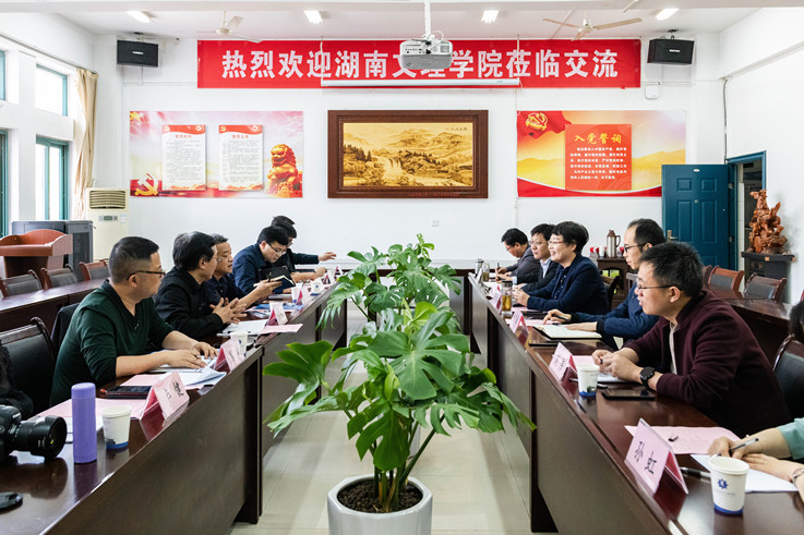 院长张润梅对湖南文理学院调研组的到来表示热烈欢迎,并简要介绍了学院近年来人才培养及专业认证的基本情况。张广斌介绍了学校对专业建设、教学质量考评等方面的措施及办法。雷经发介绍了学院专业认证及一流专业申报的做法和经验。随后,双方就专业认证、师资队伍建设、教学管理、科研项目及成果、学生创新能力培养等相关工作进行了探讨与交流。