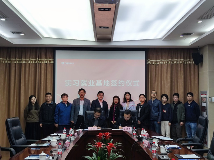 本网讯 10月20日,机电学院党委书记徐军率机械工程系、毕业班辅导员一行8人,赴泰禾智能光电有限公司签订实习就业合作协议,并为机电学院在泰禾智能光电实习就业基地挂牌。机电学院党委副书记何鹤立、机械工程系教授雷声、相关专业教师、辅导员、泰禾智能副总裁王忠军、事业部企业管理部副总监潘胡平及企业工作的校友代表参加签约和揭牌仪式。