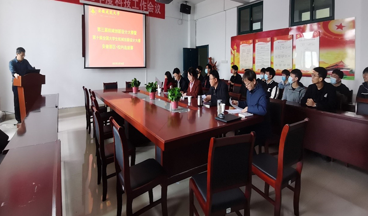 本网讯 2022年3月18日下午,必赢76net线路官网第三届机械创新设计大赛暨第十届全国大学生机械创新设计大赛(安徽赛区)校内选拔赛在机电楼举办,教务处副处长葛立新、机械与电气工程学院院长张润梅、副书记何鹤立、副院长黄磊及系室负责人出席,本次比赛本次大赛由教务处、校团委主办,机械与电气工程学院承办。