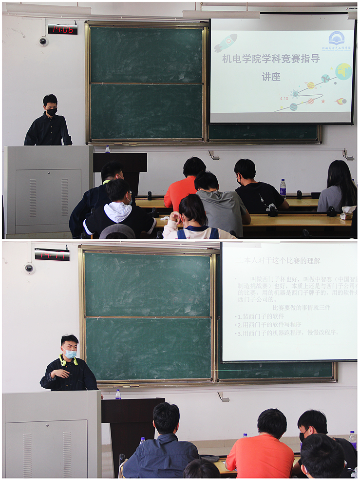 本网讯 为加强学生对学科竞赛的认识,进一步提高学生科技创新能力,激发学习兴趣,机电学院于近日举办学科竞赛基础知识讲座。