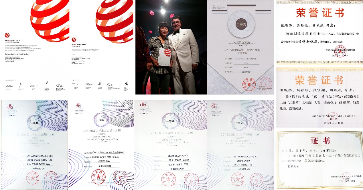 近年来,工业设计专业学生的创新实践能力得到了大幅度地提升。学生参加国际大赛、全国大学生工业设计大赛、安徽省工业设计大赛、NOC、安徽省科普创意创新大赛等项目,参赛项目范围逐步扩大。目前学生参加全国大学生创新创业项目与省级大学生创新创业项目近100项,申请发明专利5项,授权实用新型专利近50项。取得了工业设计界“奥斯卡”之称的红点奖2项,国家级和省级比赛奖项近60余项。