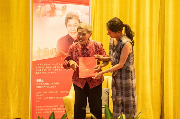 链接:张景兰,1948年10月出生,中共党员,安徽省人大机关工会主席。从1998年开始助学至今,已经有24个年头,在她任职期间设法筹资并动员机关同事共捐助了250名皖南贫困山区女童,退休后,她依靠拾荒资助900余名贫困学子。2001—2004年连续被评为“全国群众体育先进个人”,2014年荣登“中国好人榜”,被评为第四届安徽省助人为乐道德模范。2015年被评为“全国道德模范提名奖”;2016年2月被评为“全国最美党员志愿者”。