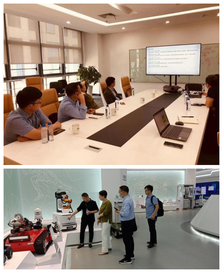 调研团一行先行参观了创新研究院数字展示中心,智能装备研究所梅晓辉逐一介绍了研究院在智能装备、人工智能、应急装备、康养装备、工业机器人及系统、微纳机器人等领域前沿科技成果和高端产品。