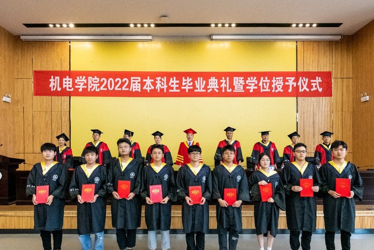本网讯 夏木繁茂,勃勃生机;栀子花开,离歌响起。初逢在金秋九月,终别于盛夏六月。6月8日,机电学院2022届本科生毕业典礼暨学位授予仪式在综合楼二楼报告厅隆重举行。校党委书记孙道胜出席典礼,学院党政领导、教师代表、全体辅导员及2022届毕业生代表共200余人参加典礼。毕业典礼活动现场采用“线上+线下”相结合的形式,不能亲临现场的师生和家长们可在腾讯会议观看全程直播,共同见证2022届毕业生们开启人生新征程的难忘时刻。