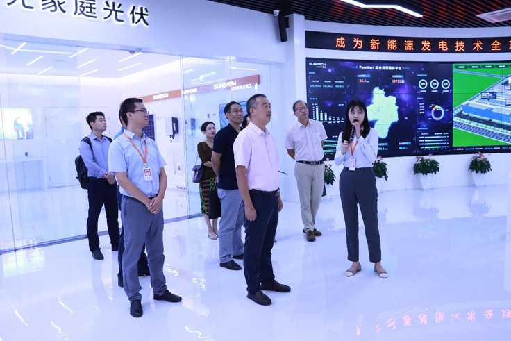 在阳光新能源,闵杰一行参观了新能源展厅,深入了解了光伏、风电、风光储氢充多能融合等领域相关前沿科技。