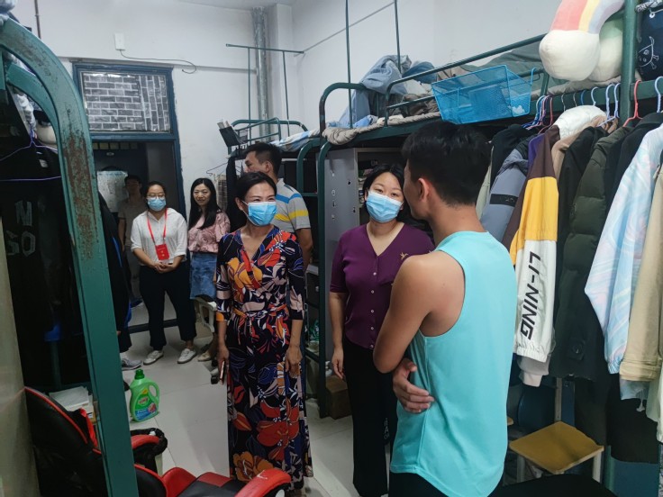 何鹤立在老生宿舍详细询问学生疫情防控情况,提醒学生预防电信诈骗;详细了解毕业班学生考研学习和就业准备情况,全面掌握学生思想动态;检查宿舍公共区域安全消防设备是否齐全、卫生防护用品和卫生消杀是否到位;提醒学生进入宿舍要进行清洁消毒,及时开窗通风,晾晒被褥,做好疫情期个人防护工作;对存在安全、卫生隐患宿舍限时清理整改,确保学生拥有卫生、安全的居住环境。