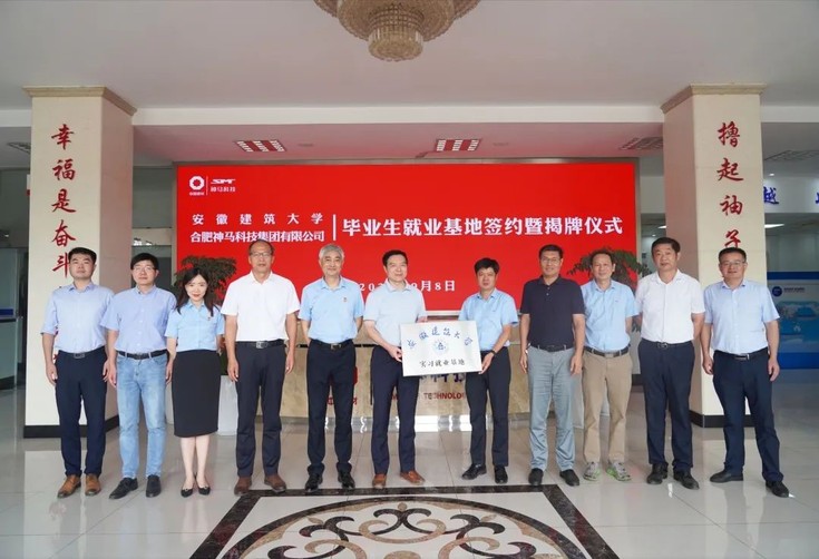 本网讯 9月8日上午党委副书记、校长黄显怀,率校就业处、机电学院、材化学院等相关部门和学院负责人赴合肥神马科技集团交流座谈,签订产学研框架合作协议并举行毕业生实习就业基地揭牌仪式。