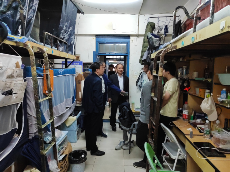 在学生公寓6号楼,吴运传一行查看学生住宿环境,了解他们学业和思想动态,“生活上有没有什么困难?”,“是否有什么需要老师们帮忙解决的问题?”一句句关心的话,让同学们倍感温暖,领导们鼓励学生养成良好的生活、学习习惯,重视寝室环境,积极努力拼搏,不断提升自身综合素质。
