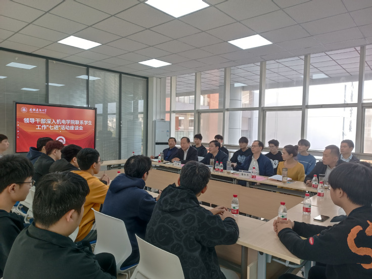 吴运传一行走进21级电气班级与学生共话成长,对学生关注的学业、生活和个人发展问题进行沟通交流,与会领导认真听取学生各项意见,围绕学校发展、教学管理、图书馆建设、住宿服务等方面为学生答疑解惑,对于提出的问题,认真记录,会后将协同相关部门及时解决,为学生创造更好的学习和生活环境。