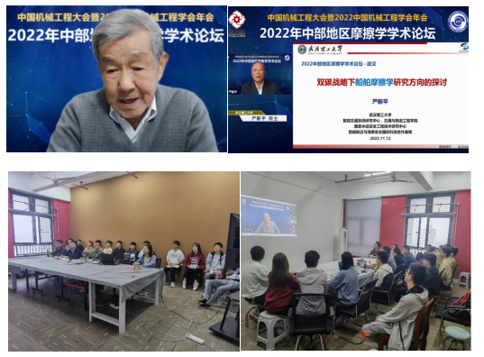 本网讯 2022年11月12日,中国机械工程大会暨2022中国机械工程学会年会系列活动——2022年中部地区摩擦学学术论坛成功举办。论坛由中国机械工程学会摩擦学分会主办,湖北省机械工程学会摩擦学专业委员会协办,武汉理工大学、武汉材料保护研究所有限公司承办,获得了合肥工业大学、必赢76net线路官网、南昌大学等多所知名高校的大力支持。必赢76net线路官网设置了分会场,机电学院刘伟教授做为组委会委员参与了会议组织工作;机电学院部分师生在分会场线上参加此次学术论坛。