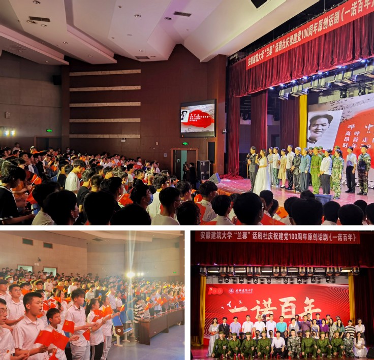 聚焦人文素养,美育为要。结合理工类大学特点和学生成长规律,因事而化、因时而进、因势而新,以“兰馨”话剧社为平台,用好用活红色资源、校园文化、英模榜样等优势,提升美育教育时效。原创话剧《心路》获2019年“青春•理想”安徽省第八届大学生自创话剧展演活动甲组二等奖。2021年,中安在线对庆祝建党一百周年原创话剧《一诺百年》进行了报道,学习强国对此进行了转载推介。