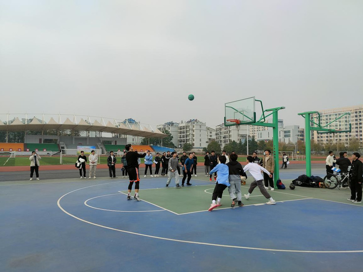 本次趣味运动会分为集体项目和个人项目。在集体项目3V3篮球比赛中,同学们团结协作,互相配合,赛出了个人风采,展现出集体凝聚力。