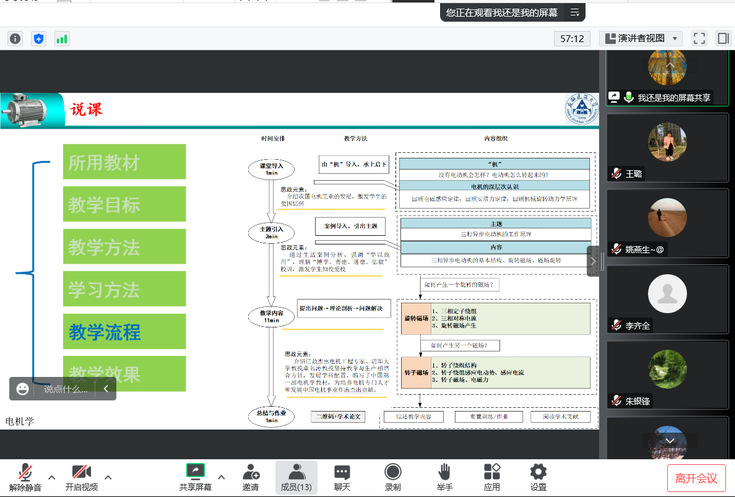 通过前期系赛遴选,各系共推荐正高3名、副高7名、中级及以下职称教师12名参加院赛。由于疫情原因,本次院赛采取线上会议的方式,分为正高组、副高组、中级及以下组进行,出场顺序由线上抽签决定。比赛过程中,参赛选手通过屏幕共享充分展示所主讲课程“教学创新成果”或“课程思政创新”、课程教学设计创新等,教学方法各有所长,讲述内容精彩纷呈。专家评委认真聆听,对各参赛教师的表现给予了充分肯定,从课堂教学创新成果、教学设计创新等方面进行了评价打分,并给出指导性建议。