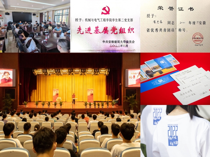 特色党课入人心。举办“中国好人”张景兰走进必赢76net线路官网活动,线上线下千余人同步直播,在感召中领悟“奉献”的真谛,成立“张奶奶爱心团队”,在行动中强化使命担当。主题教育更走心。围绕“多措并举提素养 齐抓共管增能力”举办主题教育活动70余次。开展毕业季特色活动,精心设计专属纪念卡册、机电学院文化衫,寄托着母校的殷切期望。社会实践增信心。组织师生参观“全国双创周”、世界制造业大会,激发学生对于科技和创新的热情。2022年,暑期社会实践“皖燕护巢”获安徽省优秀团队,团队成员受中国青年报采访。学生第二党支部获校“先进基层党组织”,1名学生荣获“安徽省优秀共青团员”称号,2名学生荣获校“优秀共产党员”称号。