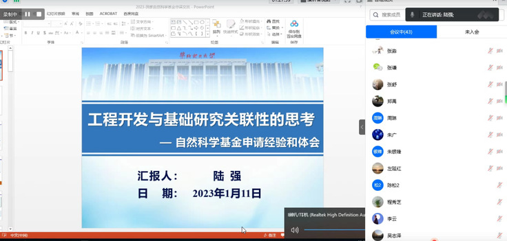 陆教授围绕“工程与基础研究关联性、自然科学基金定位、基金申请三要素”等内容,针对基金申报的立项依据、科学问题、选题创新展开了详细的分析讲解;结合其2022年度立项基金申报书,从细节层面上给大家分享了基金撰写的成功经验。