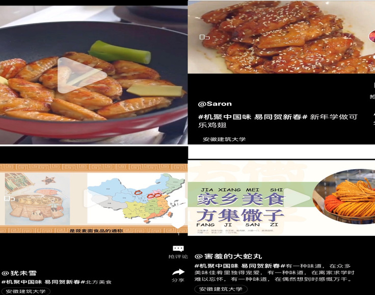 随拍美食的意义或许是赋予食物仪式感,在平凡的日子的记录生活。为鼓励同学们用一张张照片捕捉家庭生活的温馨画面,传递家人相亲相爱、其乐融融的和谐氛围,机电易班工作站举办“随拍美餐”活动。同学们热情高涨地参与其中,用照片定格每一个享受美食的瞬间,分享不同地方的特色美食。大家提交的作品中有云南的过桥米线,四川的椒麻鸡,天津的狗不理包子,安徽本地的臭鳜鱼、牛肉汤和肉夹馍等等,每一张图片都传递着同学们在过年期间的幸福与快乐,寄托着对美好生活的向往与热爱。