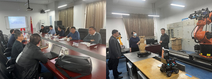 在北京建筑大学,调研组一行参观了“机器人仿生与功能研究”和“建筑大数据智能处理方法研究”北京市重点实验室、学院创新创业示范基地、科研创新团队等,在后续的研讨中,双方就学科建设、青年教师培养、科研团队打造、基金申报等问题开展了深入交流。