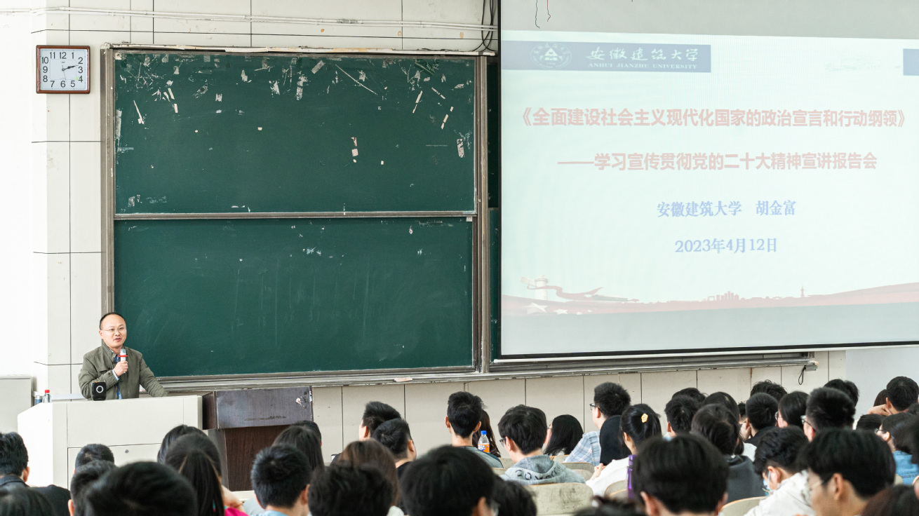 本网讯4月12日下午,机电学院在主教楼1401举办党的二十大精神专题宣讲会,马克思主义学院教授、校党委讲师团成员胡金富老师应邀作专题报告。机电学院全体师生党员、春季入党积极分子培训班学员参加宣讲会,会议由机电学院党委书记叶少宝主持。