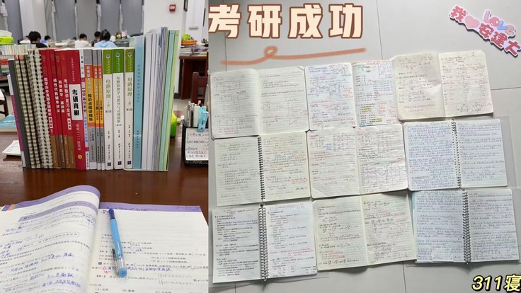 决心考研,互帮互助。“考研是一场孤独又孤勇的战役,宿舍、食堂、图书馆三点一线是考研人的常态”。在大三时,寝室六人同时决定选择考研,他们摒弃了外界的嘈杂和喧闹,用毅力磨砺成长,用帮扶相互成就。在回寝室的路上或者在排队打饭时,会互相抽背单词;除了六人整体作战外,内部还形成“一带一”监督模式;考研压力较大大时,就“夜谈”相互交流或者一起去跑步解压……