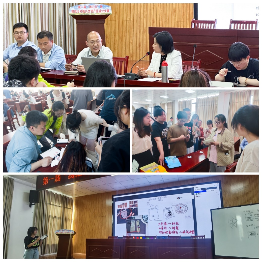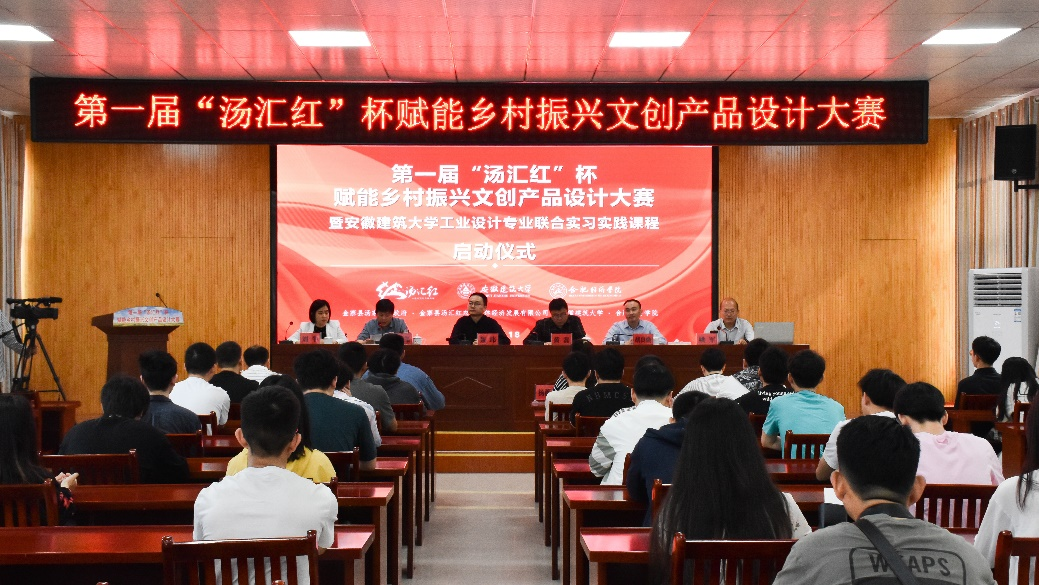 本次毕业实习课程依托第一届“汤汇红”杯赋能乡村振兴文创产品设计大赛,以设计创新成果赋能乡村振兴。在大赛开幕式上,金寨县副县长聂玮致开幕辞,希望师生们通过实地调研,以“红色、绿色、古色”文化为主题,进行红色文化创意产品、特色农产品包装等进行设计,深耕汤家汇文化内涵,漾溢时代魅力,提炼出具有现代感的设计创新。学院领导、教师代表、学生代表先后发言,表达了对大赛举办的祝贺,和对后期竞赛制作,提出具体的要求和动员。