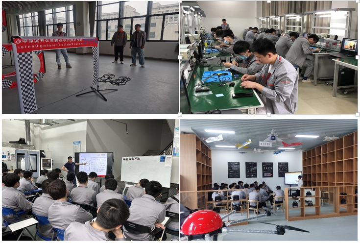 在无人机车间里,同学们实习了无人机组装、检修、调试、模拟、实地试飞等模块,获得了无人飞机操作、维修、安装、调试、航拍技能。
