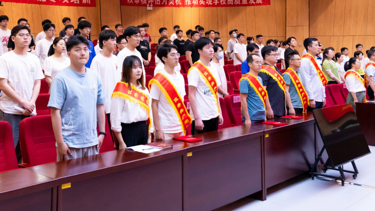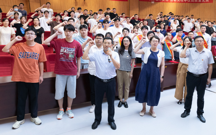 铮铮誓言,薪火相传。新党员代表整齐列队,在学院党委书记叶少宝的带领下面向党旗庄严宣誓,会场全体党员重温入党誓词,感悟中国共产党员的初心使命,强化为人民服务的责任担当。