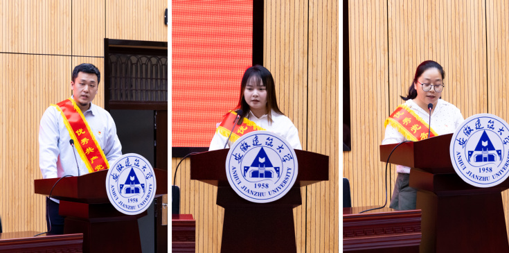 大会为受表彰的先进集体代表和优秀个人颁奖。优秀共产党员代表、工业设计系教师于曈,优秀共产党员代表、2021级机械专业研究生张雷,优秀党务工作者代表、测控专业学生党支部书记、专职辅导员江双分别作交流发言。