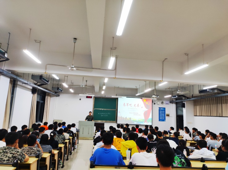 在活动中,李永超、王飞扬、符发明三位退役大学生结合自身服役经历,从在校参军、军营磨砺、退役复学、收获成长等方面与新生分享他们迷彩戎装的青春感悟,并鼓励同学们把握机遇、不负韶华,积极投身热血军营,到部队这个大熔炉中历练提升、施展才华,在实现强军梦的伟大实践中书写别样人生。