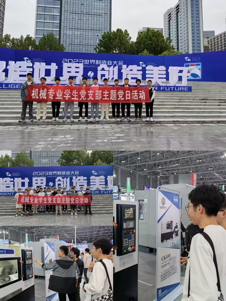 本网讯 为广泛深入了解2023世界制造业大会,现场领略数智赋能的中国制造业风采,加强学生对专业的认同感。机械专业学生党支部于9月23日组织学生党员、入党积极分子赴2023世界制造业大会现场开展主题党日活动。