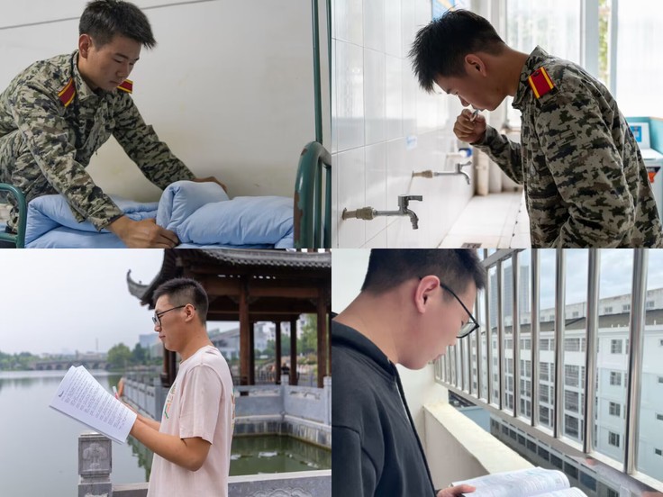 一日之计始于晨,奋斗的青春最美丽。清晨6:30,大一新生徐小伟便早早地起床叠被,在南食堂吃完美味的营养早餐后开启了军训的一天。大二电气工程及其自动化专业学生朱城霖此刻正面朝易海湖畔,在晨读中开启了新的一天。