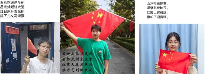 活动引导学生寻找生活中的国旗,并以“五、星、红、旗”藏头创作诗歌等形式表达对祖国的热爱和祝福,充分展示了机电学子朝气蓬勃、勇于探索、奋发向上的精神风貌。