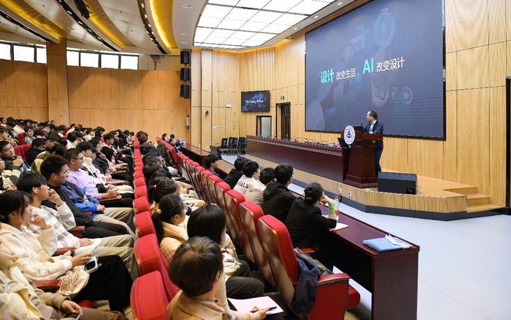 本网讯 11月22日,由校党委宣传部主办,机械与电气工程学院承办的第110期“易海大讲堂”在南校区徽韵楼二楼报告厅举行。联想集团副总裁,联宝科技研发总经理、PC业务群组总经理、高级工程师袁康做客易海大讲堂,为建大师生带来一场名为“设计改变生活,AI 改变设计”的专题报告会。报告会由机械与电气工程学院副院长陈中主持,机电学院院长张润梅教授、机电学院部分骨干教师、学生代表共200余人参加了本次讲座。