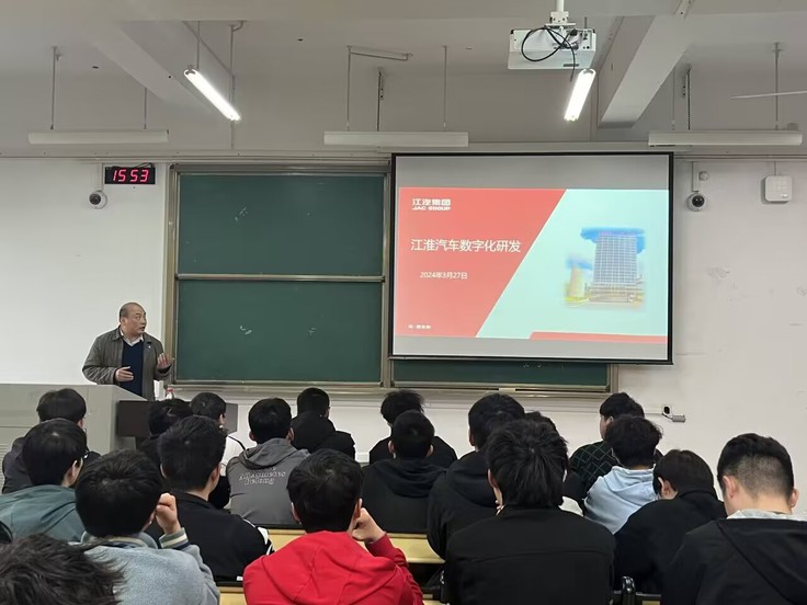 开班仪式结束后,安徽江淮汽车技术中心工程院数字部部长徐清魁以“江淮汽车的数字化研发”为题,为同学们介绍了数字化发展的现状和趋势,从产品研发的信息化工具,到工业4.0、智慧工厂,让培训班同学大开眼界。(文:汪日光、毛亚岐,图:刘静;审稿:张润梅、黄磊)