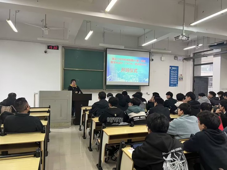 本网讯 3月27日下午,机电学院在逸夫楼5308举行了第二期“数字化设计培训班”开班仪式。工程图学教研室全体教师、第二期培训班学员以及在必赢76net线路官网2023产品信息建模大赛CATIA赛道取得优异成绩的第一期学员参加了开班仪式。