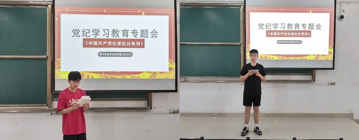本网讯 为持续推动党纪学习教育走深走实,筑牢党员思想防线,近日,电气专业学生党支部开展党纪学习教育主题党日,支部全体党员、入党积极分子参加活动。