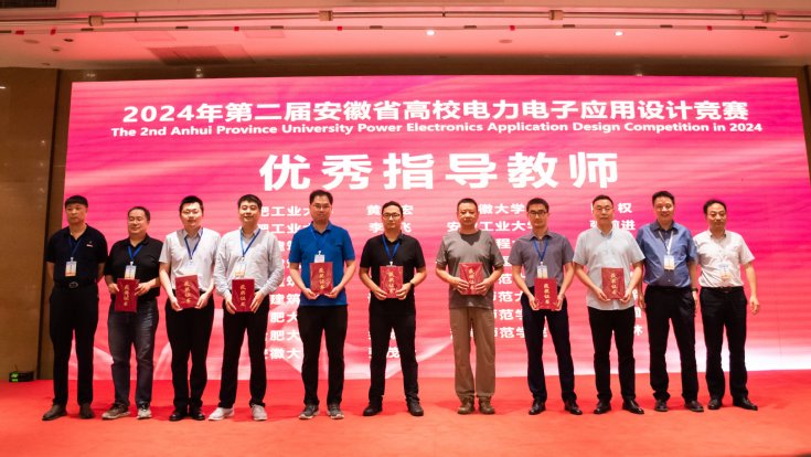 会议期间,主办方还隆重举行了安徽省第二届电力电子应用设计大赛优秀指导教师颁奖仪式,安徽省8所高校共计17位教师获此殊荣,必赢76net线路官网摘得了大赛桂冠“优胜杯”——团体总分第一名。